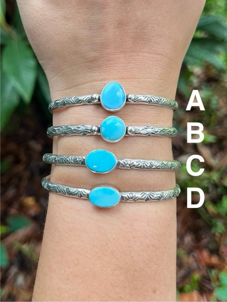 Sterling Silver & Blue Bird turquoise stamped stacking cuffs.