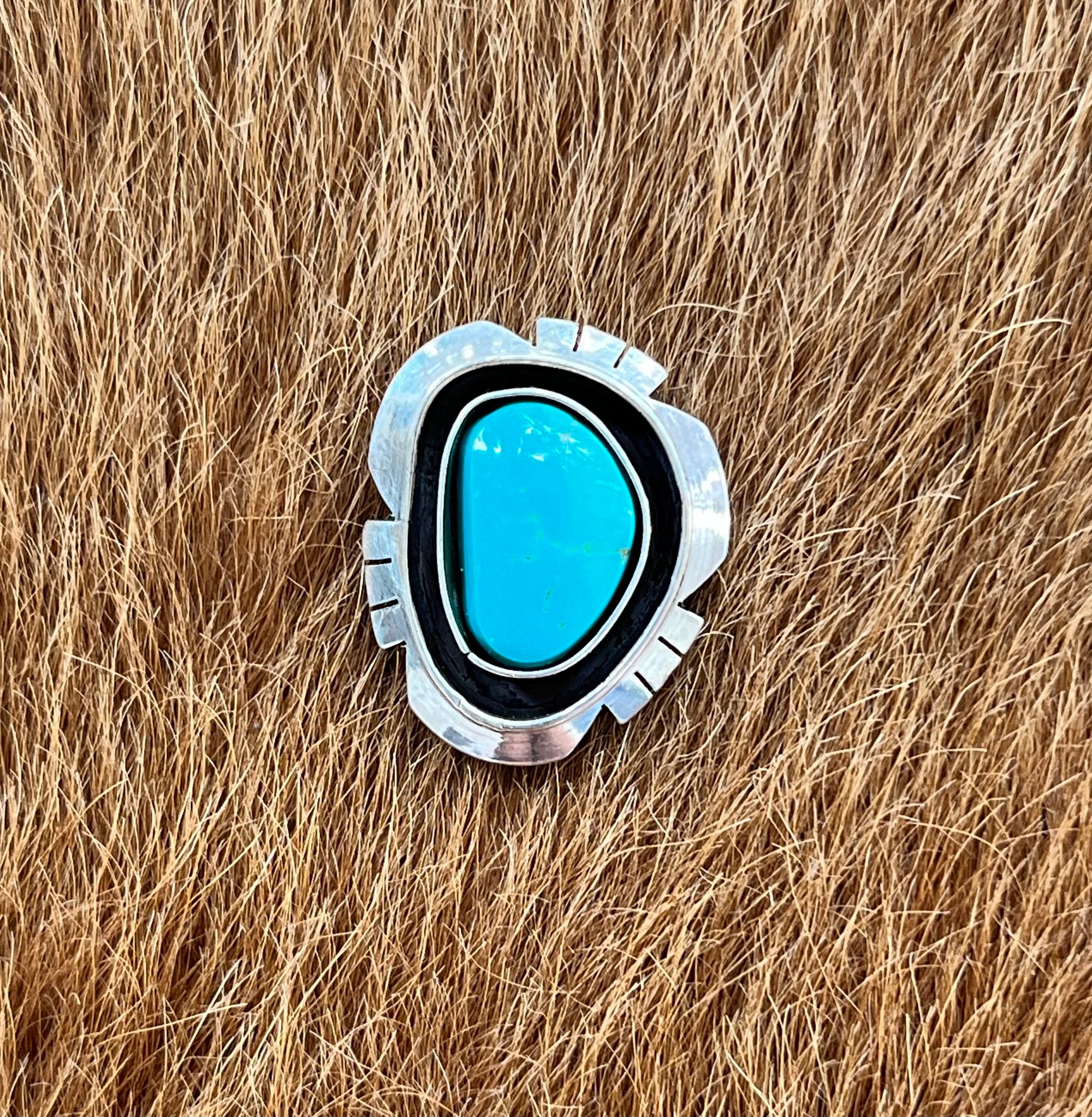 Handmade sterling silver and Royston turquoise saw cut shadowbox rings. Will be finished in your size with a sterling double half-round split band. Will also include my maker's mark and Sterling stamp.