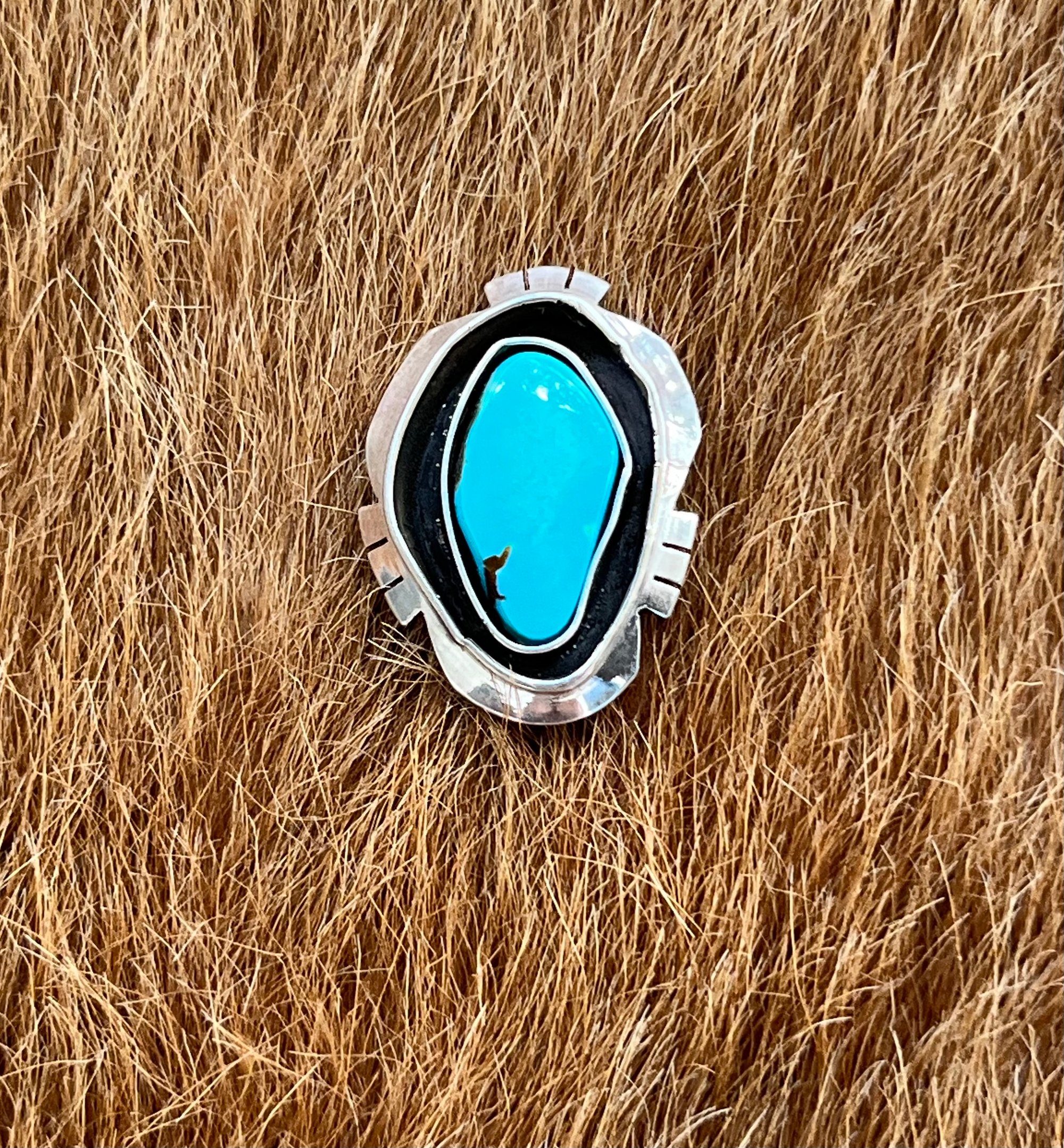 Handmade sterling silver and Royston turquoise saw cut shadowbox rings. Will be finished in your size with a sterling double half-round split band. Will also include my maker's mark and Sterling stamp.