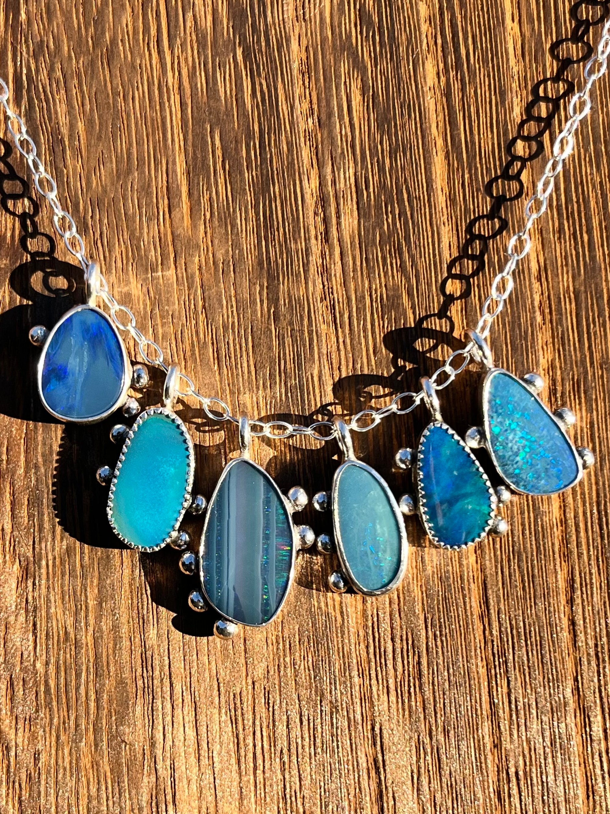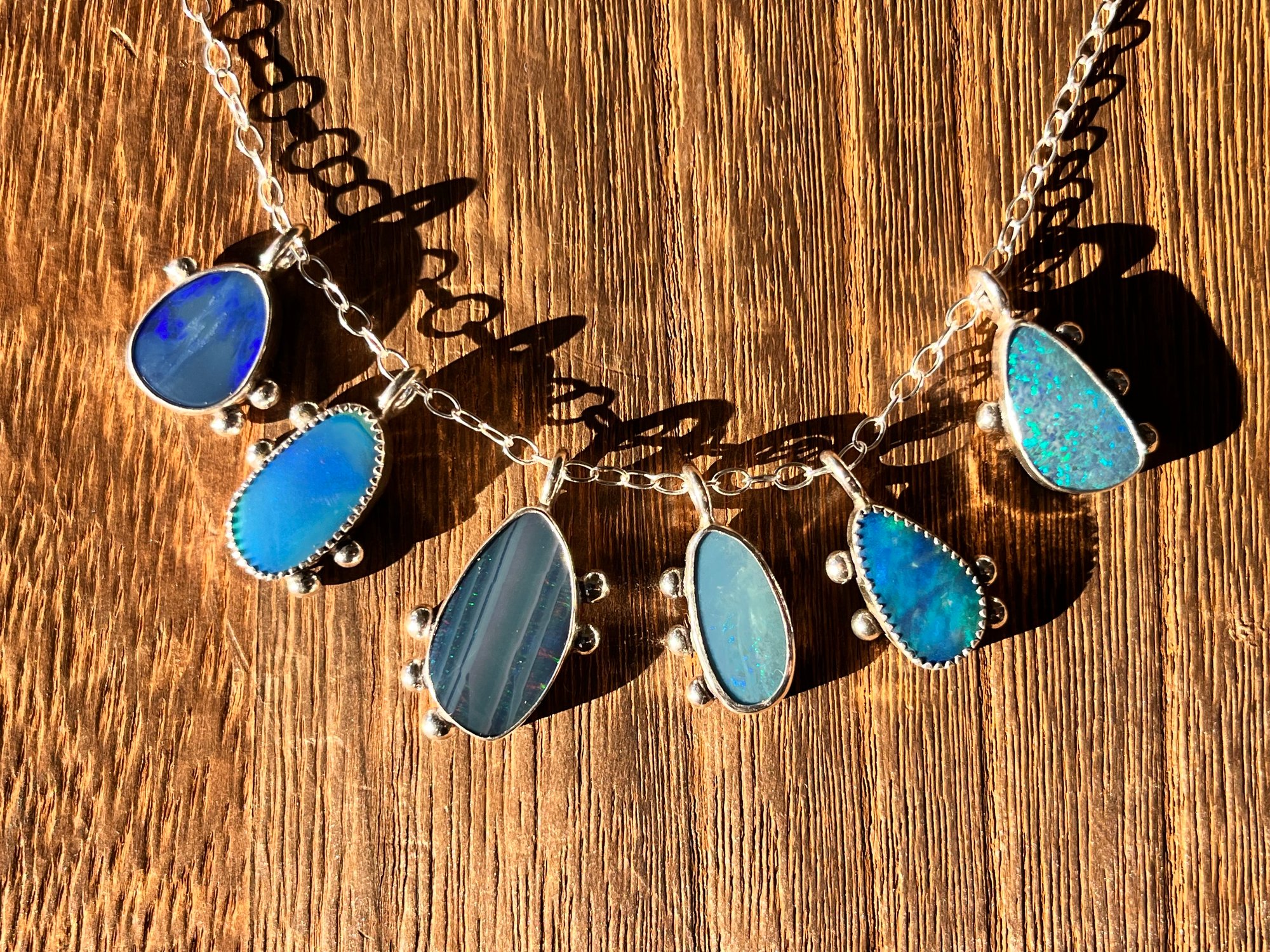 Handmade with Sterling Silver and Australian Opal. These sweet little opal necklaces each come on an 18" sterling silver chain. Each piece just as striking as the other.