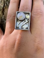 Handmade Sterling Silver and Moonstone Ring. Get your hands on this magical little piece just in time for the Halloween. Each piece features a gorgeous iridescent 10mm moonstone and comes on a sterling silver half round split band.